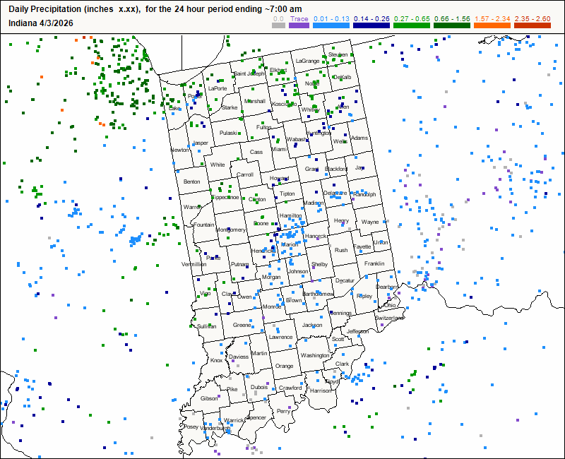 Does your business or organization use CoCoRaHS data? If so, then we'd like to hear about it! It may be a usage of the data that we were unaware of, and we are always interested in discovering additional ways this wonderful data source is being utilized. Please contact: Beth Hall at the Indiana State Climate Office.