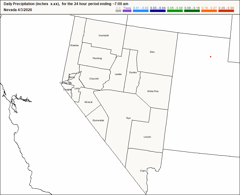 The Silver State is proud to be a member of CoCoRaHS! From 13,145 ft high at Boundary Peak to only 479 ft at the Colorado River, and from Reno to Las Vegas, we're now able to measure how dry or wet the Silver State really is! Joining the network in 2007, Nevada was the westernmost state at the time to participate in CoCoRaHS in the continental U.S. Be a part of this volunteer weather watching group with your own 4-inch rain gauge--simply click Join CoCoRaHS on the menu, or contact one of the state coordinators.