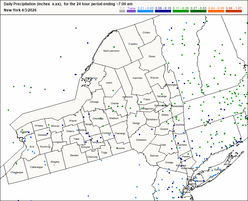Here is a list of SKYWARN training pages. Pre-registration is required. NWS Albany: http://www.weather.gov/aly/skywarn NWS Buffalo: http://www.weather.gov/buf/Skywarn NWS Binghamton: http://www.weather.gov/bgm/outreachSKYWARNtraining NWS New York: http://www.weather.gov/okx/skywarn NWS Burlington: http://www.weather.gov/btv/skywarn Welcome to New York CoCoRaHS! From Buffalo to "The Big Apple", Plattsburgh to Binghamton, and all the other great towns and cities in between, the Empire State is proud to be a part of the growing CoCoRaHS network! New York observers are partnered in a national network which provides a great volunteer service to the community, the county and the state by providing information on precipitation, snowfall, and snow depths. The information is used by government and university scientists, community officials, farmers, county emergency managers, watershed managers, drought monitors, and by your friends and neighbors.