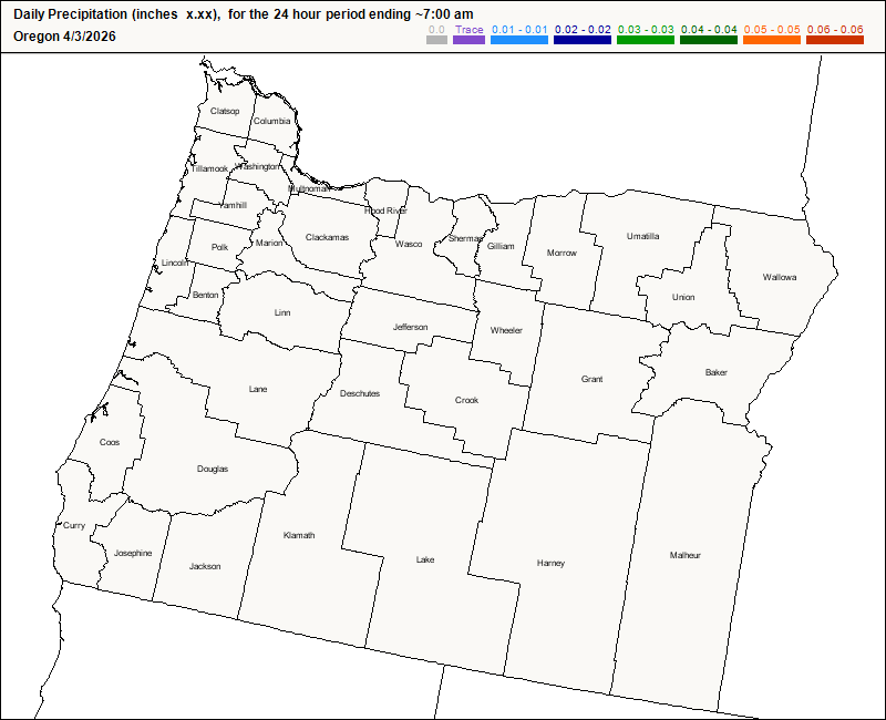 News: We are in the heart of summer, and for the past several years that has meant quiet, dry weather. This year has been much more active with showers and thunderstorms across Oregon. You volunteers are crucial for getting rainfall observations in those areas right under thunderstorms where the NWS and other organizations don't have permanent rain gauges. But, as a reminder, even if the weather is quiet and there is no rain, MAKE SURE TO ENTER ZERO FOR RAINFALL. That's very important for a complete station data set. If you leave it blank, we cannot assume that no rain fell that day.